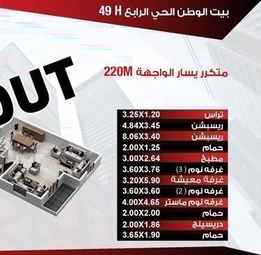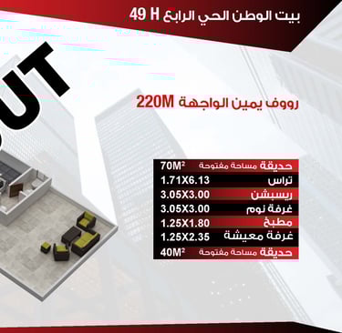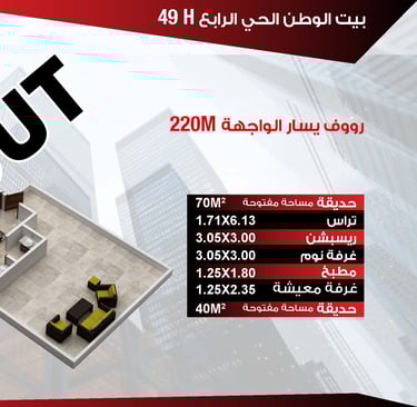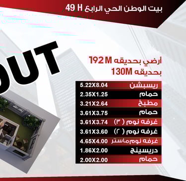 The H-49 project, Fourth District (Beit Al Watan), is a golden investment opportunity that cannot be missed, as it combines a distinguished location, distinctive designs, diverse services, competitive prices, and a rewarding investment return.
