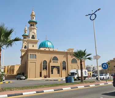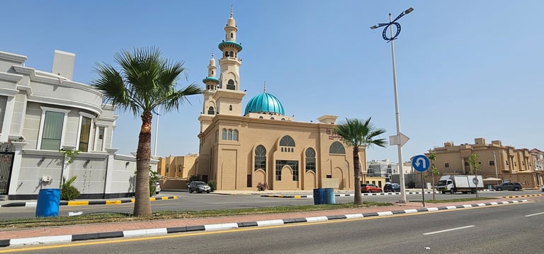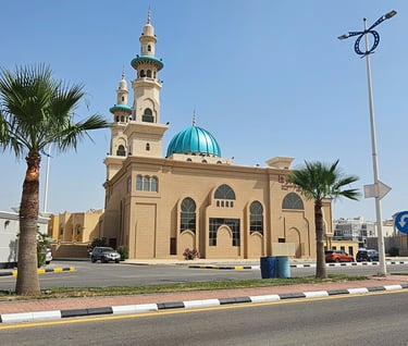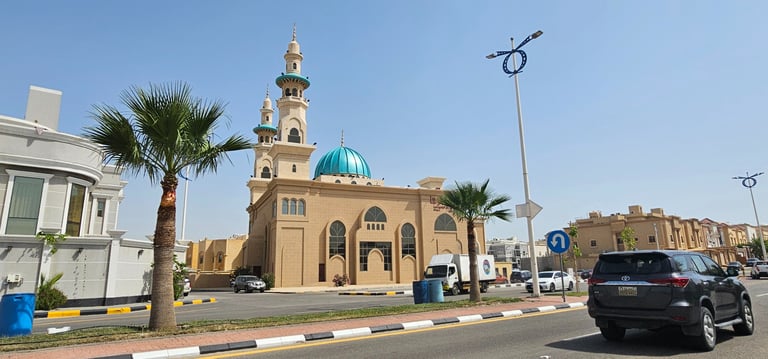 المساحات الخارجية: تشمل حدائق ومساحات خضراء حول المسجد، توفر بيئة هادئة ومريحة للمصلين.